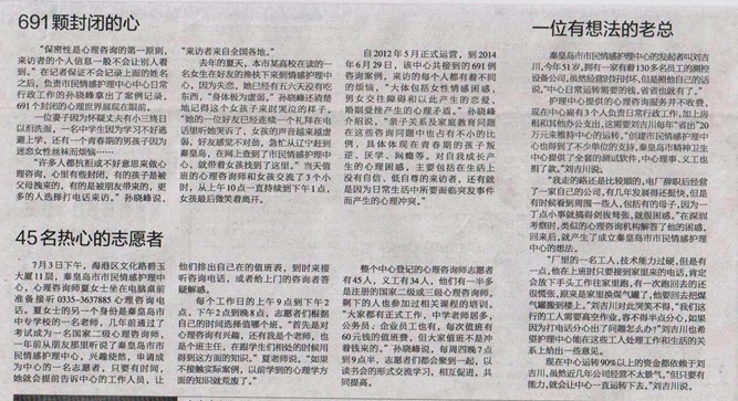 《秦皇島晚報》2014年7月15日A6版