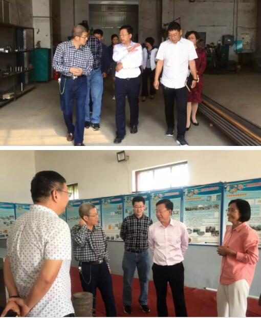 圖為海港區(qū)副區(qū)長田學清、商務局局長李學良一行四人參觀生產(chǎn)車間和展覽室