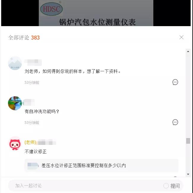 直播開始。劉吉川先生從當下“火力發電廠鍋爐汽包水位測量系統儀表安裝常見問題”開始講述,形象(圖文并茂)的向大家展示鍋爐汽包水位測量系統儀表現階段它所反應的實際情況。客觀的對各類水位儀表及安裝現象給予解析,并結合多年來電廠實際處置經歷,以專家的角度,多維度、跨專業為大家答疑解惑。同步在線收看收聽人數節節攀升,累計1300余人,反響熱烈。