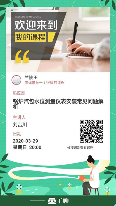 2020年3月29日晚8時,秦皇島華控集團有限公司董事長劉吉川先生將攜手【熱控圈公眾號】舉辦“火力發電廠鍋爐汽包水位測量系統系列講座之儀表安裝常見問題解析”。