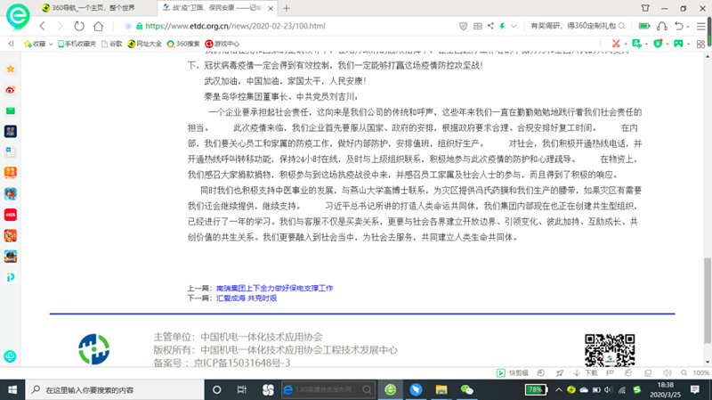 【企業要聞】戰“疫”面前,人人有責 -記中國機電一體化技術應用協會工程技術發展中心刊登我司報道有感