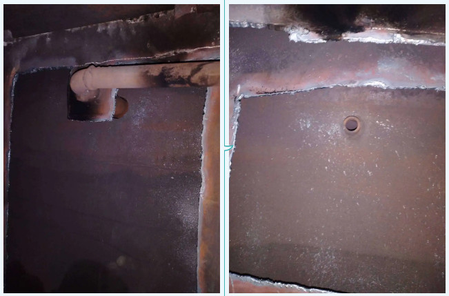 新疆某化工有限公司鍋爐汽包自投產以來電接點水位計一直存在測量筒內無水、無法測量問題,困擾該廠多年,一直無法解決。2019年新疆某化工有限采購我公司高精度取樣電極傳感器并于同年9月檢修期間對#2鍋爐汽包其中一臺電接點水位計進行更換。起爐后高精度電極取樣傳感器仍然出現測量筒內無水情況,現場運行人員遂將情況反饋給我公司,公司對此高度重視,前后兩次派遣工程技術人員前往現場進行實地考察檢測。在鍋爐運行過程中對設備進行多項試驗后發現:將高精度電極取樣傳感器汽側取樣一次閥門調小后測量筒內會出現少量水,完全打開汽側取樣一次門測量筒內反而無水,我公司產品故障排除。為幫助解決客戶問題,2020年5月利用檢修期間將汽包打開,我公司工程技術人員張永廣進入汽包內進行全面檢查,在拆除汽包內側擋板后發現汽包內聯箱內原有汽側取樣管路并未焊接,水位計汽側取樣并未接入汽包內部,內聯箱內高壓汽水混合物干擾水位計汽側取樣,造成測量筒內無水、水位無顯示。我公司配合檢修人員對此進行整改,整改后水位計顯示正常。自此,該廠水位計多年無法測量問題得以解決。