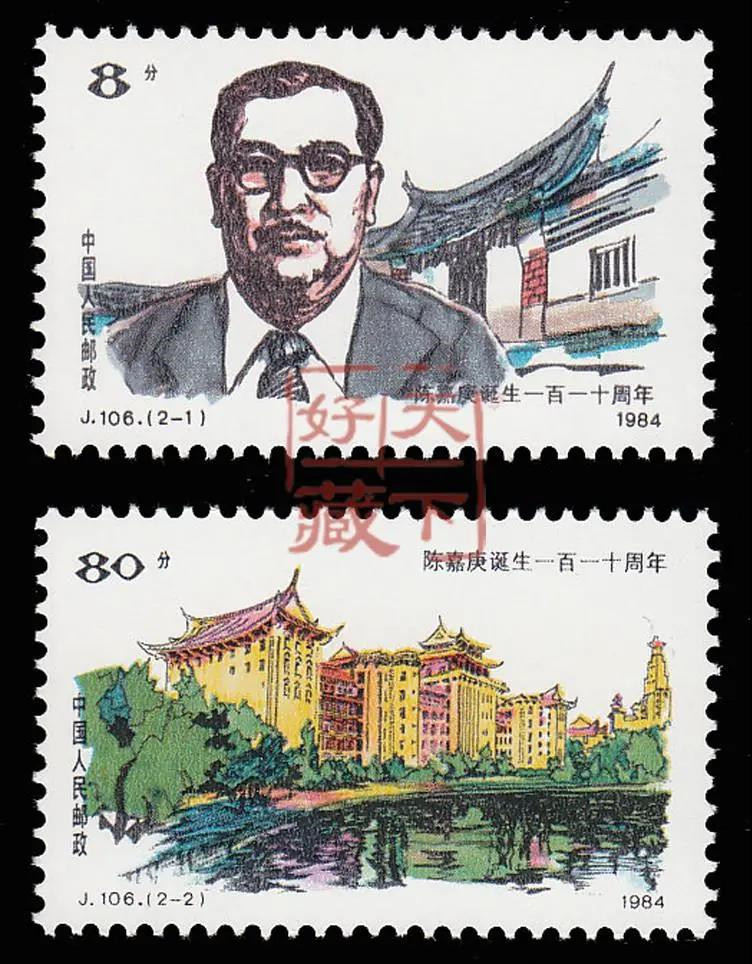1984年10月21日,我國郵電部為了表達中國人民對著名愛國僑領的深深懷念,發行了一套陳嘉庚誕辰110周年紀念郵票。此套郵票共2枚,由我國著名郵票設計家黃里設計。