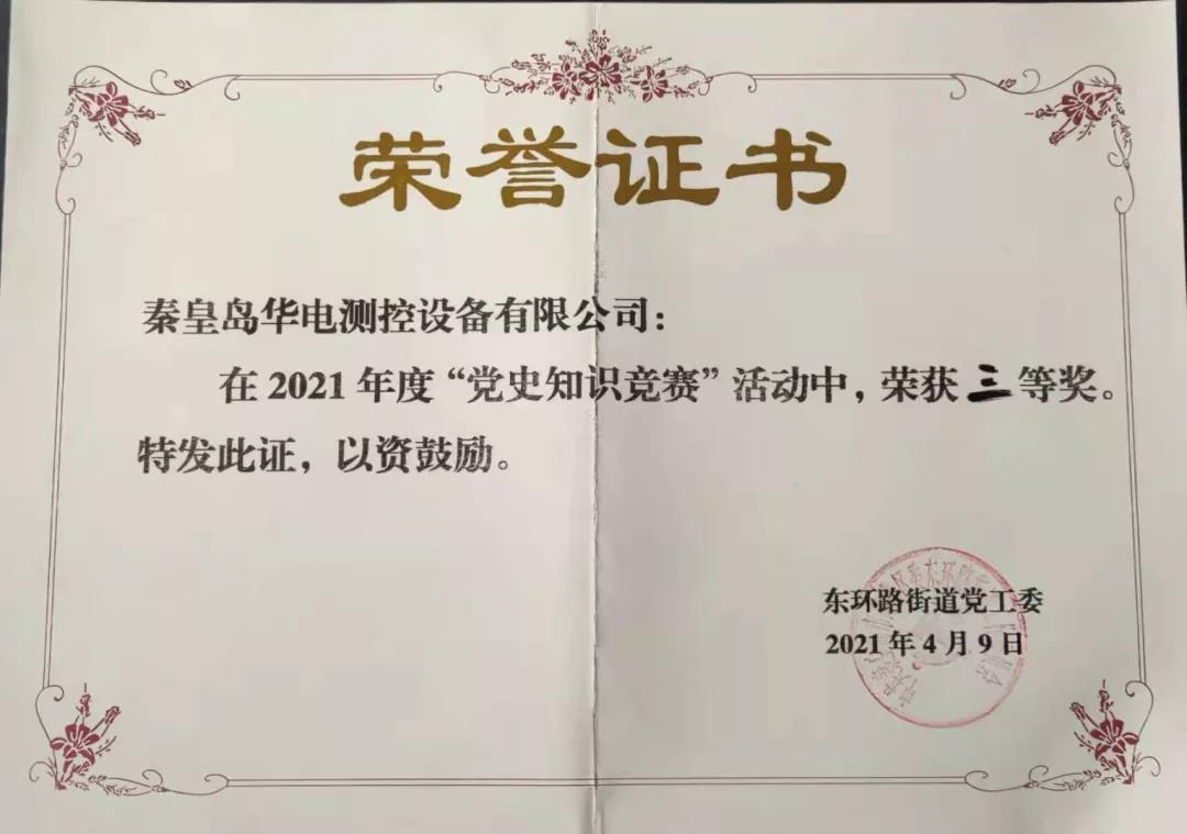 為慶祝中國共產黨成立100周年,加深黨員對黨的歷史、黨的知識、黨的理論和路線方針的認識,激發黨員的愛黨愛國熱情,堅定走中國特色社會主義道路的信心,2021年4月9日,東環路街道黨工委舉辦了黨史知識競賽活動,華電測控黨支部作為非公企業代表參加了此次競賽。