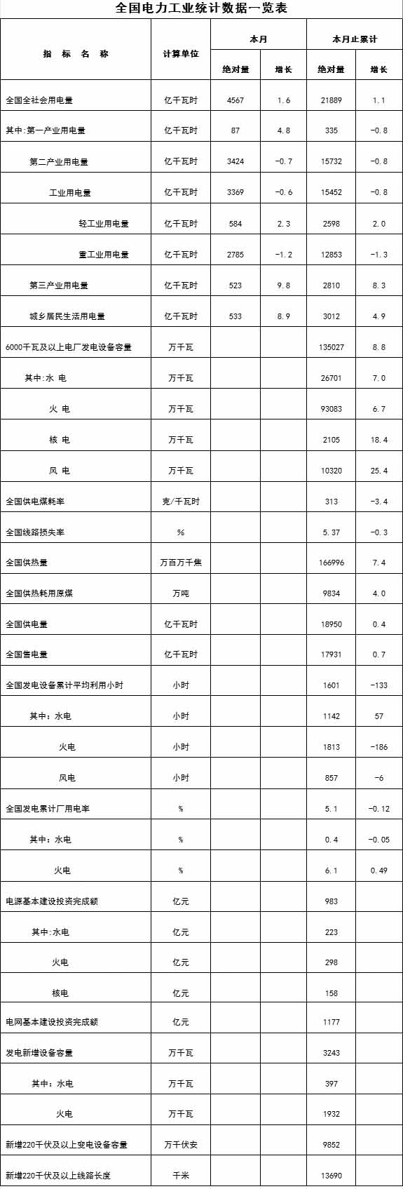 附:全國(guó)電力工業(yè)統(tǒng)計(jì)數(shù)據(jù)