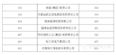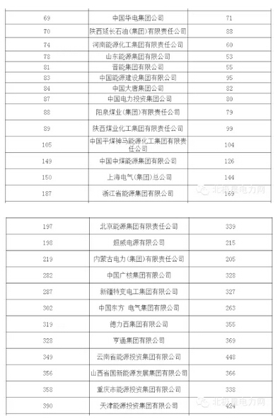 小編整理了上榜2015年中國企業500強的能源電力企業及2014年排名情況: