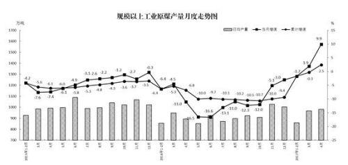 據(jù)國家統(tǒng)計局消息,統(tǒng)計局今日發(fā)布2017年4月份能源生產(chǎn)情況,數(shù)據(jù)顯示,規(guī)模以上工業(yè)原煤生產(chǎn)增速加快,價格有所回落;原油生產(chǎn)降幅收窄,原油加工量增速回落;天然氣生產(chǎn)快速增長;發(fā)電量增速放緩。