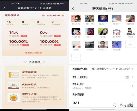 此次運動會是由河北省總工會牽頭主辦的“中國夢·勞動美—喜迎二十大·建功新時代”職工“云”上運動會,市級、區(qū)級總工會逐級組織基層單位工會共同參與。“云”上運動會,充分利用網(wǎng)絡技術(shù)和“云”上手段,多渠道普及推廣科學健身知識,開展大眾普適性健身項目,結(jié)合常態(tài)化疫情防控工作實際,讓職工“云”健身成為生活常態(tài)。自活動開展以來,華電測控職工每天達標率100%,大家每天任意選擇6項運動(AI跳繩100次、AI運動場完成4項、健步走6000步以上、騎行6公里以上、健身20分鐘、跑步3公里以上)中的1—2項,完成即為達標。