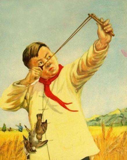 1958年2月12日,中共中央、國務院發出《關于除四害講衛生的指示》,提出要在10年或更短一些的時間內,完成消滅老鼠、麻雀、蒼蠅、蚊子的任務。指示發出后,全國掀起“除四害”運動,不斷宣傳“排山倒海除四害,造福子孫萬萬代。”這次“全民除四害”運動,大概也是一項世界紀錄。文學通常和時事生活是緊密相連的。有人為此壯舉作了詩歌,如《擂鼓鳴金除四害》:“老鼠奸,麻雀壞,蒼蠅蚊子像右派。吸人血,招病害,偷人幸福搞破壞。千家萬戶快動手,擂鼓鳴金除四害。”時人還編成順口溜:“鼠雀蚊蠅,害人妖精。除盡四害,下定決心。人人動手,個個出陣。打早打小,斬草除根。要叫四害,斷子絕孫。”人們嘴里唱著“蒼蠅、蚊子、麻雀、老鼠你往那里跑?東村西院都安排好……”的《除四害歌》,手里拿著各式各樣的“武器”,不停地拍蒼蠅、轟麻雀、打老鼠。