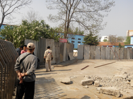 由于受北環路改造工程影響,自2015年4月24日起,秦皇島市建設局開始對我公司入廠大門、廠區主路和門衛室進行改造,經過了先期對改造項目的綜合考慮、圖紙設計、項目談判,該工程現已開始施工。面對大幅度的施工和改建,公司副總經理楊廣宇、管理部后勤總務聶鳳秋等人共同商議廠區安全防護預案。車間調度張勇清、班組長尹新磊接到任務后第一時間進行了工作安排,其他同事也紛紛積極響應,大家火速的行動起來,找材料框架、下固定枝桿、捆綁擋板、共同商議封堵位置等。恰逢周末休息時間,大家頂著烈日,沒有一句怨言,齊心協力、積極配合,最終圓滿的完成了廠區的安保工作。既保證了廠區的安全,又未耽誤改造項目的施工進度。