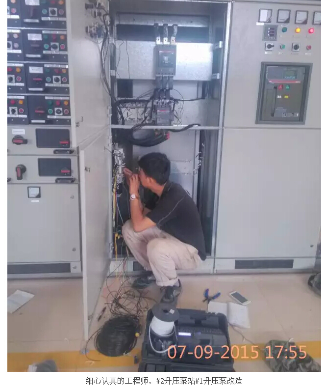 同時在同一地點的另一施工現場,在公司總工程師、工程部經理姜崇明領導下,水廠的無人化值守程控部分改造緊鑼密鼓的推進。#2升壓泵站的變頻自動供水、節水泵站遠程自動控制、二級泵站供水閥自動、全廠排污坑自動排水、取水泵站取水泵和液控閥聯動自動供水、全廠視頻監控系統等等,一個又一個的技術難點被攻克,一個又一個的系統被優化,得到的是客戶滿意的微笑,收獲得是公司員工的成長。
