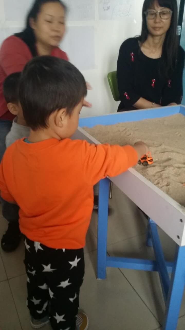 似懂非懂的我帶著各種的擔心,擔心孩子小還不到3歲,比較淘氣,會不會可哪亂跑?會不會把玩具弄壞?會不會弄得沙子哪都是?會不會耍賴?帶著各種擔心和不確定來到了情感護理中心,劉伶華老師和肖艷玲老師接待了我們,給我們說了一下活動的方向和注意事項,活動就開始了。老師們認真的觀察和記錄,也讓我們這樣靜靜的觀察我的兒子,我兒子沒有因為環境的變化而不自在,剛說明活動內容時,感覺兒子完全沒有在聽,可是他在活動時,凡事都試探著慢慢的在做,沒有亂跑,沒有亂弄玩具,沒有把沙子弄得哪都是,完全出乎我的意料,雖然沒有做出完整的沙盤,可是老師通過細致的觀察,從孩子的行動中,已經看到了孩子的內心。給我們分析了孩子的狀況,孩子哪方面發展的比較好,哪方面還有待提高,還給我們舉出很多案例供我們參考,“沙盤游戲”是個時時刻刻長期有效觀察孩子的活動,不同的時期會反映不同的效果,更真切的了解孩子的成長。