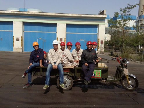 #4機組鍋爐C原煤倉改造工作于2015年8月28日安裝調試完成,設備一次投入率100%。此時的我們笑容滿面。