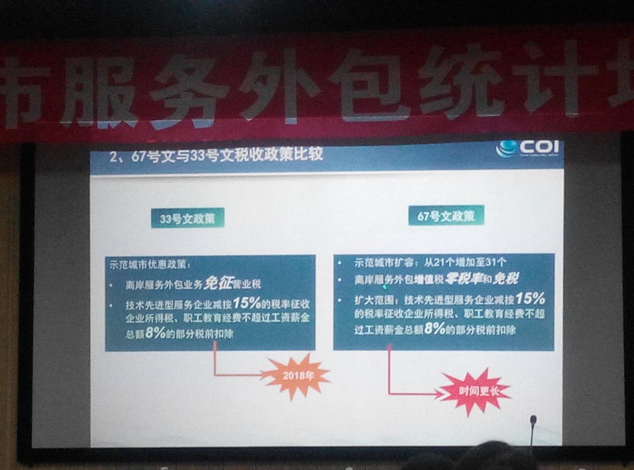 通過本次培訓清晰了什么是服務外包;服務外包的分類:2014年現行統計標準分為三個門類(ITO信息技術外包、BPO業務流程外包、KPO知識流程外包),九個大類(軟件研發外包、信息技術服務外包、運營和維護服務、內部管理外包服務、業務運營外包服務、供應鏈外包服務、商務服務外包、技術服務外包、研發服務外包),35個中類;服務外包與服務貿易之間的關系等。服務外包產業的發展在國家政策《國務院關于促進服務外包產業加快發展的意見》國發[2014]67號文件(離岸服務外包增值稅零稅率和免稅,擴大范圍:技術先進型服務企業減按15%的稅率征收企業所得稅,職工教育經費不超過工資薪金總額8%的部分稅前扣除)的支持力度下,不斷成長提升。通過建立的有效溝通和營銷渠道,構建交易平臺,積極走出去,尋求與國際接軌的走向國際的策略,借助云計算、大數據等新技術融合共同發展。最后,主辦方秦皇島市商務局代表做了總結發言,還為大家精心準備了冷餐,就餐的同時大家相互交流,彼此相互了解。