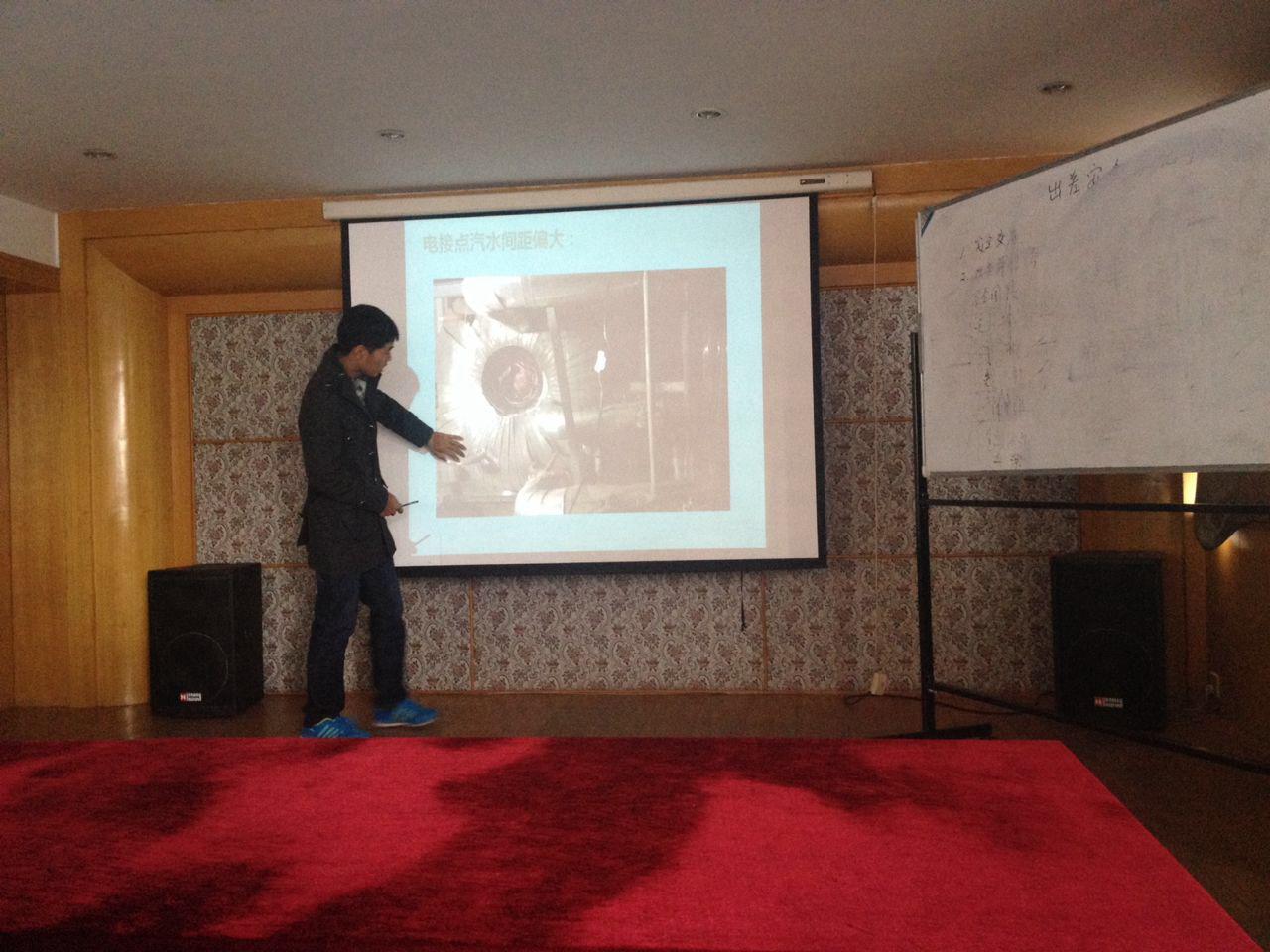 為了檢驗工程部新員工出差學(xué)習(xí)的效果,發(fā)現(xiàn)他們在工程技術(shù)中存在的問題。工程部于2015年10月29日上午在公司二樓會議室舉辦了一次水位計安裝調(diào)試講課技術(shù)培訓(xùn),主講人是工程部助理工程師于孔菲和郝子琦。
