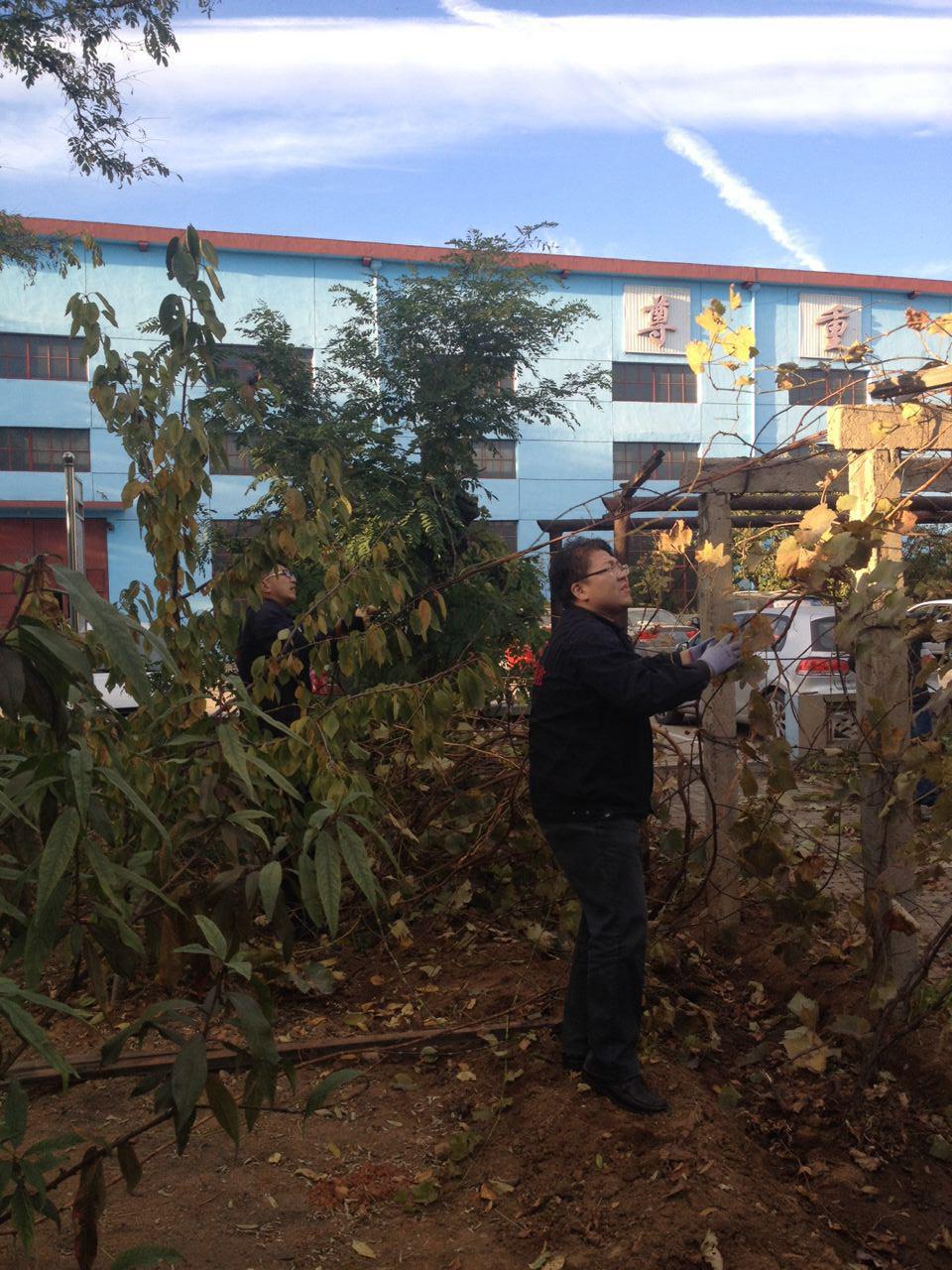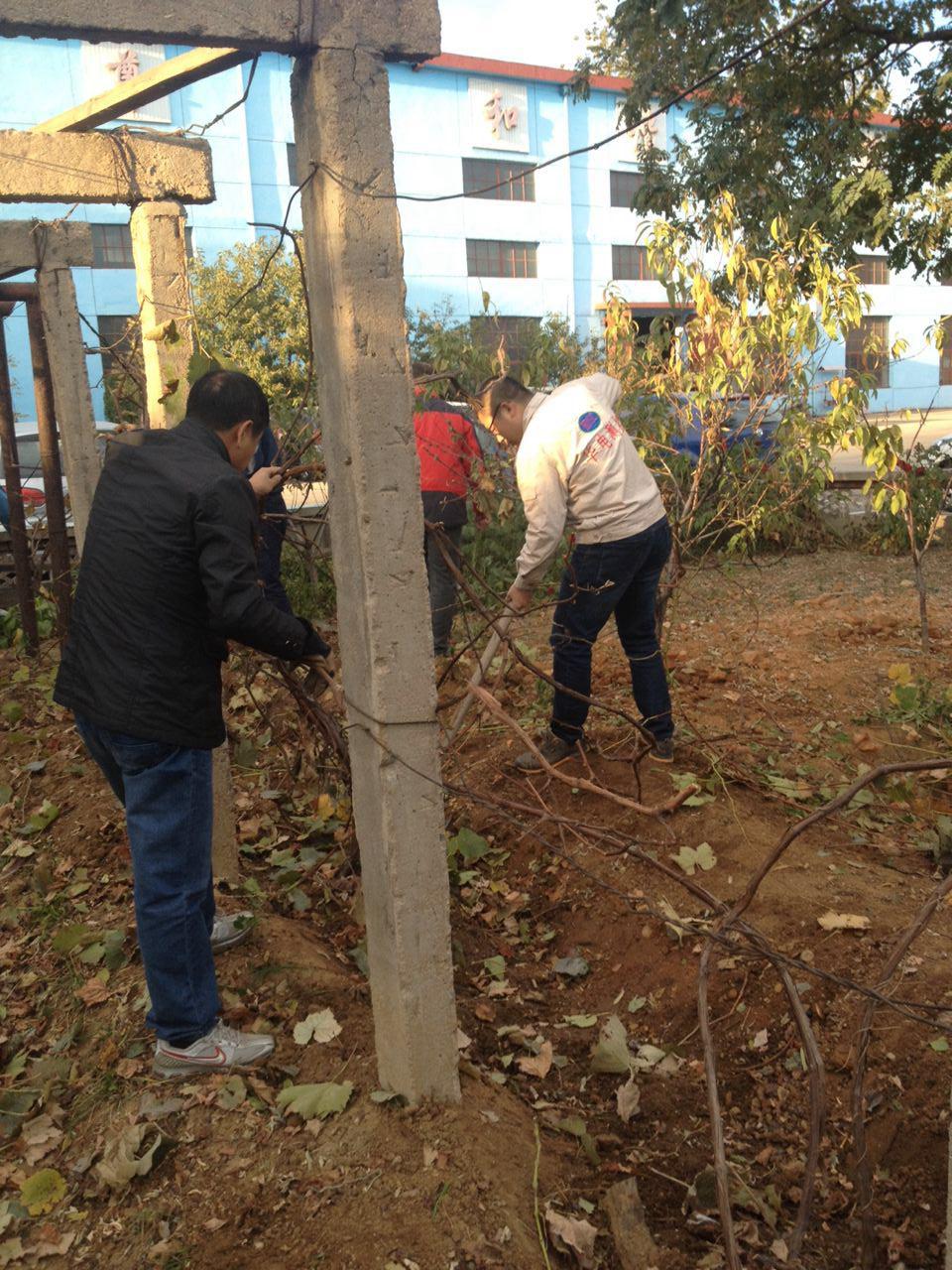 秋去冬來,為了保證明年公司果園葡萄秧更好地發(fā)芽和新生枝蔓,幫助葡萄秧調(diào)節(jié)生長,以提高產(chǎn)量、連年豐產(chǎn)。在公司黨支部書記劉劍鋒、公司副總經(jīng)理趙亮和各位黨小組組長的指導下,華電測控黨支部組織開展了一次“修剪果園葡萄枝”的主題黨員活動。