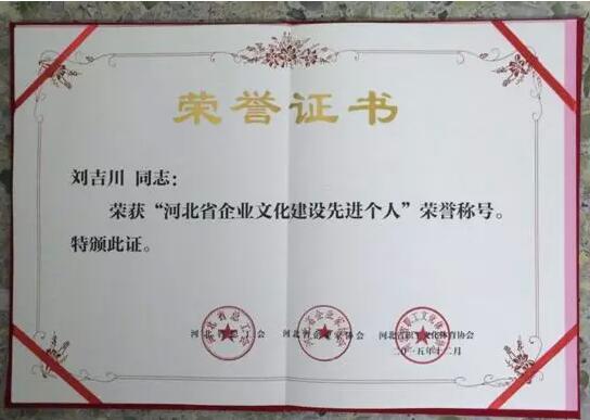 2015年12月22日,河北省企業(yè)文化建設(shè)研討會暨“河北省企業(yè)文化建設(shè)示范單位”授牌儀式在石家莊市舉行。秦皇島華電測控設(shè)備有限公司獲此殊榮,公司總經(jīng)理劉吉川先生榮獲“河北省企業(yè)文化建設(shè)先進個人”榮譽稱號。公司黨支部書記、工會主席兼副總經(jīng)理劉劍鋒代表公司及總經(jīng)理劉吉川,上臺領(lǐng)取了“河北省企業(yè)文化建設(shè)示范單位”及“河北省企業(yè)文化建設(shè)先進個人“獎牌。