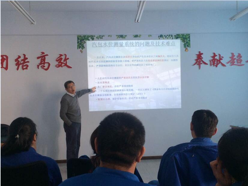 2016年1月5日上午,秦皇島華電測控設備有限公司總經理劉吉川先生親赴華電能源佳木斯熱電廠,為“熱工分廠”技術人員組織了一場關于“鍋爐汽包水位計測量”的授課。授課內容涵蓋了“汽包水位測量系統改造必要性、汽包水位測量系統的問題及技術難點、如何解決、改造效果”等四個方面。作為汽包水位測量行業的專家,劉總的授課受到了熱工人員的一致認可。