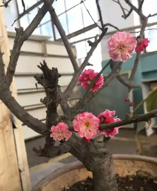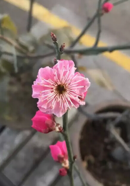 也許是工作的繁忙讓我經常忽略周圍的環境變化,今天不經意的一瞥,竟然發現了幾朵嬌艷的粉色?。?!那是保潔姐放在車間一盆不起眼的“干樹杈”,我走近一看,竟然冒出了好幾朵粉嫩的花,有的含苞待放、有的正在盛開,湊近一聞一股黯然凜冽的幽香撲鼻而來,沁人心脾。