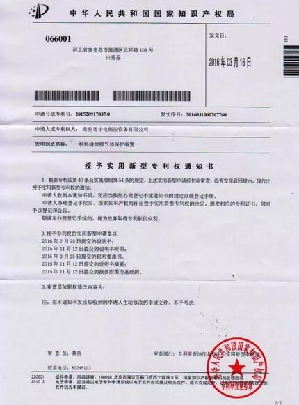 公司于2015年11月12日提交的“一種環縫焊接氣體保護裝置”專利已被中華人民共和國國家知識產權局授權實用新型專利權。