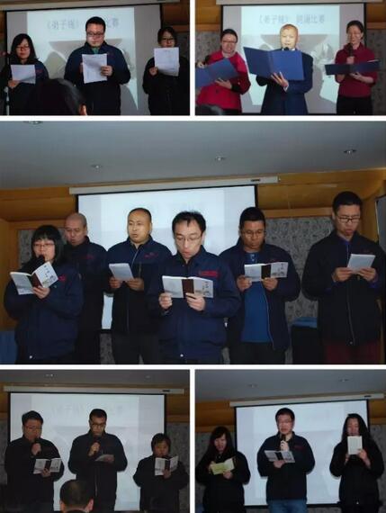 此次朗誦比賽高潮迭起、異彩紛呈,各個(gè)部門在選材、朗誦形式、服裝隊(duì)形等方面別出心裁、力求不凡:國(guó)貿(mào)部學(xué)貫中西,用中英雙語(yǔ)朗誦了《弟子規(guī)》,讓人眼前一亮;工程部借著快板演出,鏗鏘有力地朗誦,將比賽推向高潮;管理部更是將《弟子規(guī)》帶入了家庭,開場(chǎng)就是子女的誦讀錄音,伴著統(tǒng)一的傳統(tǒng)服飾,一出場(chǎng)就讓古韻流淌、文化傳承……每個(gè)部門都用自己的方式詮釋了《弟子規(guī)》的內(nèi)涵,每個(gè)節(jié)目都發(fā)人深思。這些精彩的節(jié)目源自于大家對(duì)《弟子規(guī)》精神的深入理解和持續(xù)踐行。最終,工程部脫穎而出,獲得了本次比賽的一等獎(jiǎng),管理部和生產(chǎn)部也分獲二、三等獎(jiǎng)。