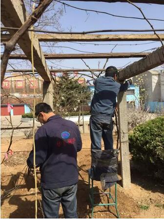 正值春暖花開、草長(zhǎng)鶯飛之際,公司花園一派生機(jī)勃勃的景象,在公司黨支部書記兼副總經(jīng)理劉劍鋒的帶領(lǐng)下,張勇清、尹新磊、劉冬建、任有志、張靜于周六下午來(lái)到公司進(jìn)行葡萄架的搭建和培植,并翻土疏松,為樹木植被澆水。