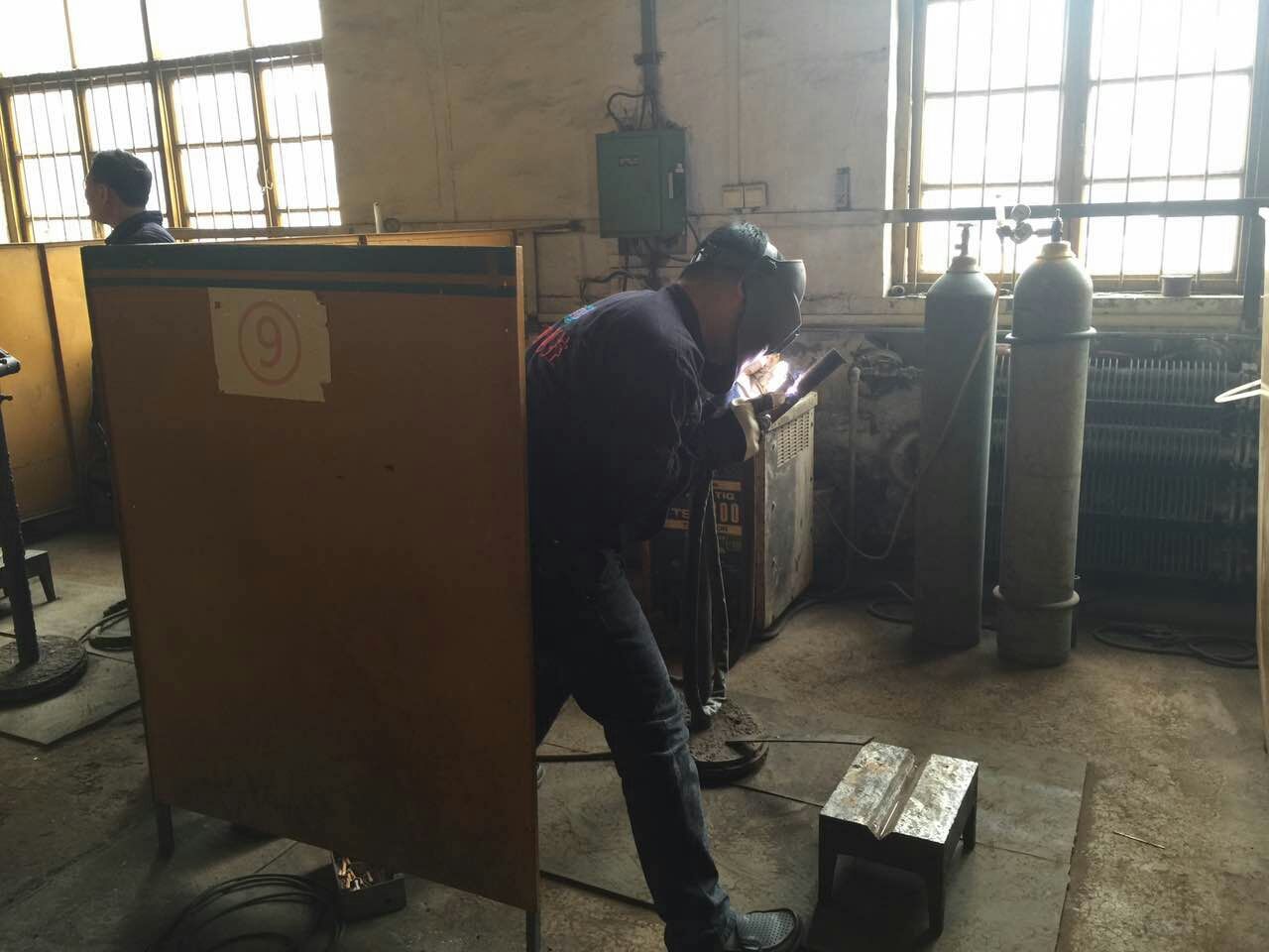 2016年5月9日,公司管理部王磊帶領生產部高壓焊工尹新磊、王輝、雷文明、李寶奎、張永廣五人趕到唐山信德鍋爐廠(專業焊工考試機構)進行焊工三型6G項目的考試。到達考試現場后,信德鍋爐廠李工熱情詳細的向大家介紹了考試規則,擁有多年資深焊工經驗的大家在了解完情況后迅速的做好了考前準備工作。