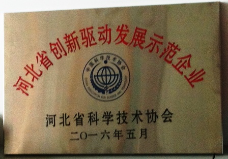 2016年5月,公司被河北省科學技術(shù)協(xié)會認定為“河北省創(chuàng)新驅(qū)動發(fā)展示范企業(yè)”。