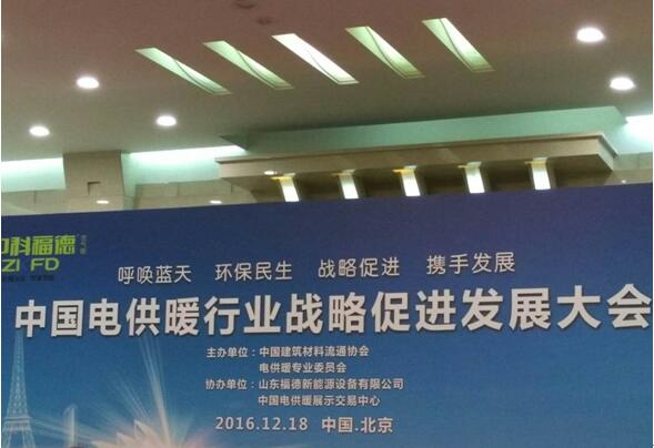 2016年12月18日,秦皇島華電測控設備有限公司應邀參加了由中國建筑材料流通協會,電供暖專業委員會主辦的在北京人民大會堂召開的《中國電供暖行業戰略促進發展大會》。本次大會到場參與的電供暖企業多達三百余家,會場盛況空前,座無虛席。