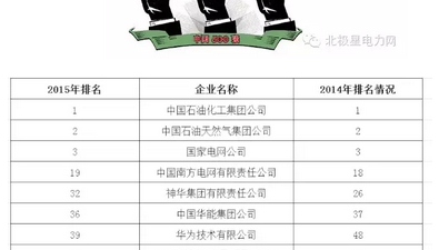 【榜單】2015中國企業(yè)500強:電力企業(yè)幾家上榜?” 2015-08-26北極星電力網獲悉:8月22日,“2015中國企業(yè)500強榜單”出爐,中國石化以2.89萬億元的總營收連續(xù)第十一年排名榜首,中國石油、國家電網分別以2.73萬億元、2.09萬億元的總營收分列二三位。 值得關注的是,互聯(lián)網公司中,京More