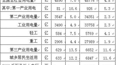 能源局:6月份全社會用電量同比增長6.5%” 2017-07-177月12日,國家能源局發布6月份全社會用電量數據。 6月份,全社會用電量5244億千瓦時,同比增長6.5%。分產業看,第一產業用電量120億千瓦時,同比增長11.0%;第二產業用電量3823億千瓦時,增長5.4%;第三產業用電量702億千More