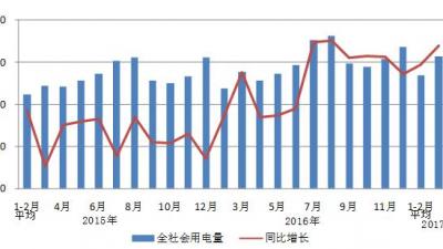 國家能源局發布2月份全社會用電量” 2017-03-203月15日,國家能源局發布2月份全社會用電量等數據。 2月份,全社會用電量4488億千瓦時,同比增長17.2%。 1-2月,全國全社會用電量累計9356億千瓦時,同比增長6.3%。分產業看,第一產業用電量134億千瓦時,同比增長12.0%;第More