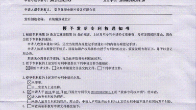 【企業要聞】喜訊:公司申請的“內裝磁致液位計”發明專利授權” 2016-07-11公司于2012年7月5日提交的“內裝磁致液位計”專利已被中華人民共和國國家知識產權局授予發明專利權,這標志著公司在水位測量領域已經擁有了5項發明專利。 本發明公開了一種內裝磁致液位計,其特征是:浮子置于容器More